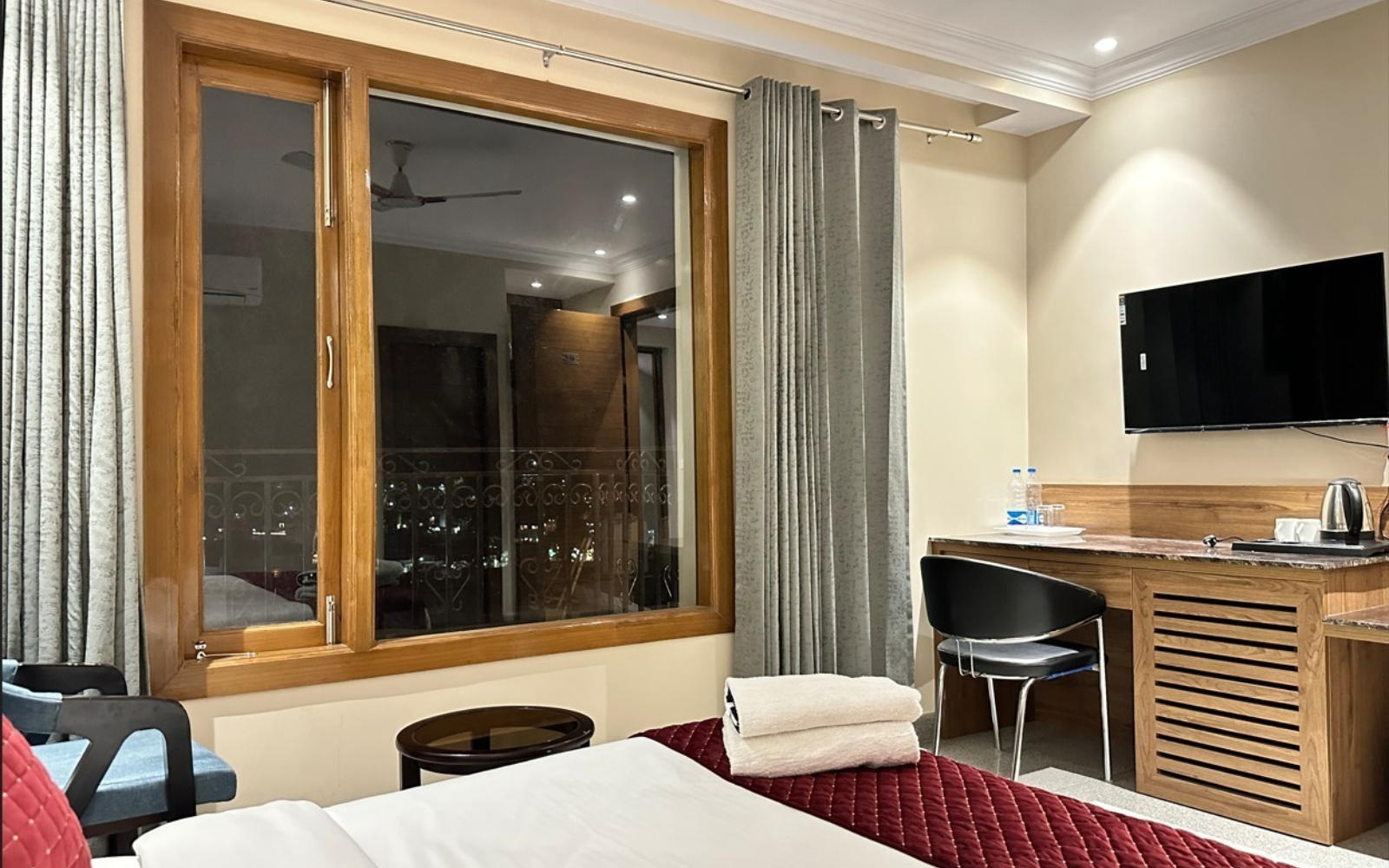 Our Premium Room with City View is thoughtfully designed to offer an elevated stay experience, combining modern comfort with stunning views of the vibrant cityscape. Elegantly styled interiors, warm lighting, and premium furnishings create a refined and relaxing atmosphere. The room features a comfortable bed, ample space to unwind, a work desk with high-speed internet, and a well-appointed bathroom with contemporary fittings and a refreshing shower. Large windows invite natural light while offering beautiful city views, allowing guests to enjoy the energy of Rishikesh from the comfort of their room. Perfect for both leisure and business travelers, this room provides a peaceful retreat in the heart of Tapovan, Rishikesh, delivering curated, memorable, and truly share-worthy experiences throughout your stay.